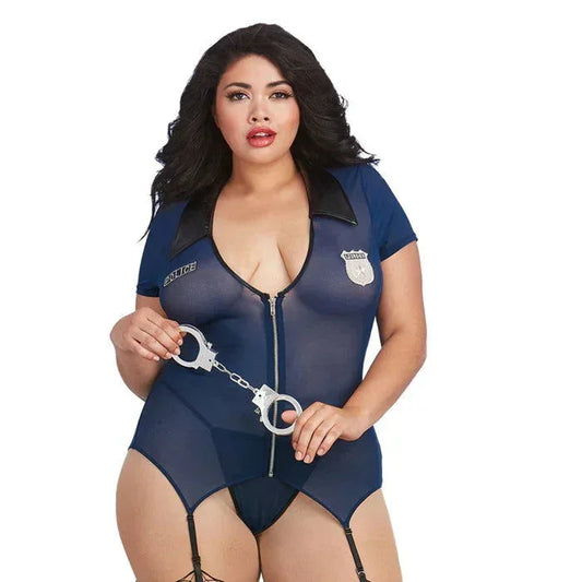 Sexy Police Costume – 4-Piece Mesh Garter Slip Set with Badge & Handcuffs