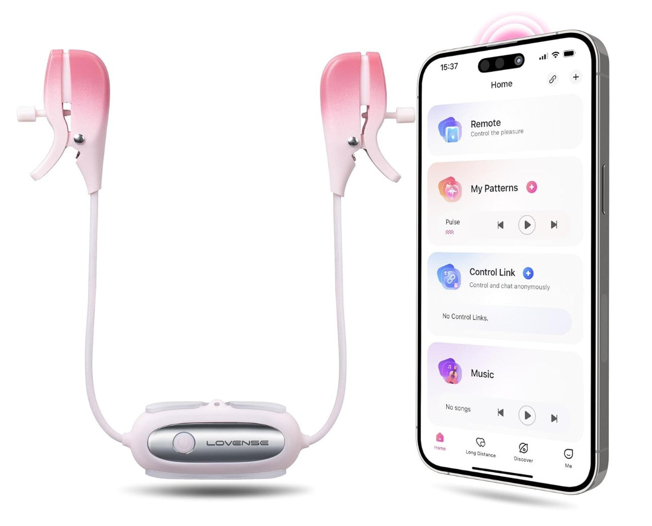 Experience versatile sensations with the Lovense Gemini vibrating nipple and clit clamps. Featuring adjustable pinch strength and powerful vibrations controlled via Bluetooth app, Gemini offers customizable pleasure for solo play or long-distance intimacy. Designed with silky silicone tips, dual motors, and water-resistant build, these clamps come with a detachable bra clip and necklace for convenient wear anytime. Sync to music, use preset or custom vibration patterns, and explore new levels of tease with Gemini’s innovative features.